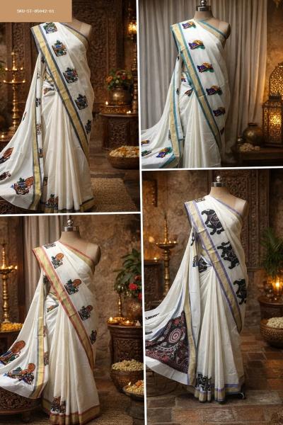 Kerala Asthri Mural Printed Cotton Saree